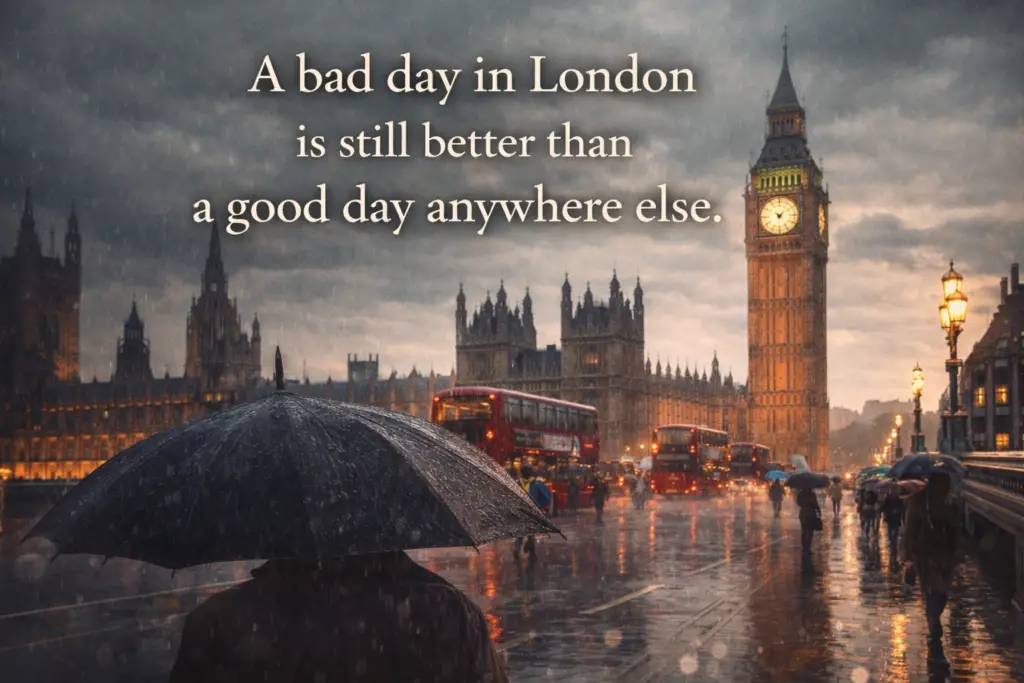 - „Deszcz czy słońce — Londyn zawsze warto odkrywać.” — Autor nieznany